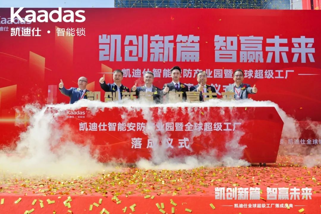3月29日,“智能安防产业园暨全球超级工厂”落成庆典于浙江温州瓯海区圆满举办,浙江省温州市瓯海区委副书记、区长刘云峰,浙江省温州市瓯海区常委副区长林照光,中国五金制品协会理事长张东立,Kaadas品牌创始人、集团总裁苏志勇,Kaadas集团董事长苏祺云,Kaadas集团联席总裁孙命阳,Kaadas集团副总裁唐盛伟,浙江实业有限公司总经理蒋念根等集团各高层领导及合作伙伴、权威媒体代表等重磅嘉宾出席了此次庆典。