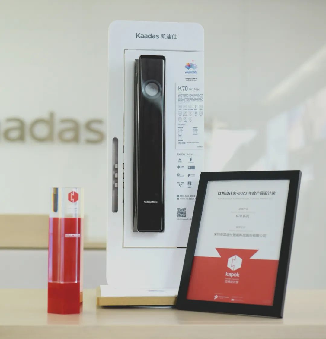 2023年12月,Kaadas再获三大重磅奖项,奖项涵盖品牌实力、产品设计两大领域,分别斩获智能物联行业「奥斯卡」大奖——「智能锁品质企业」、「2023国资国企精选供应商十强」、「红棉设计奖 · 2023年度产品设计奖」。